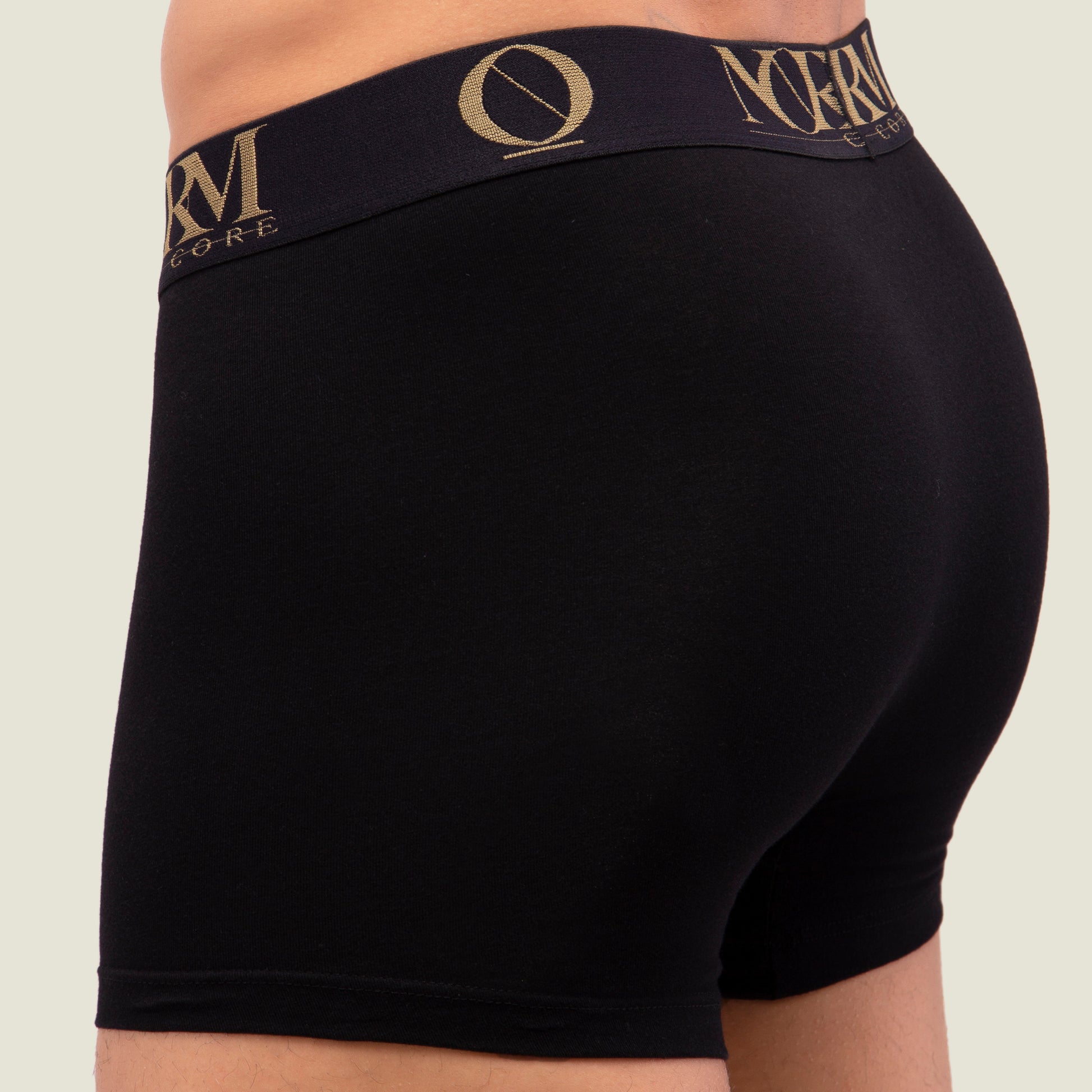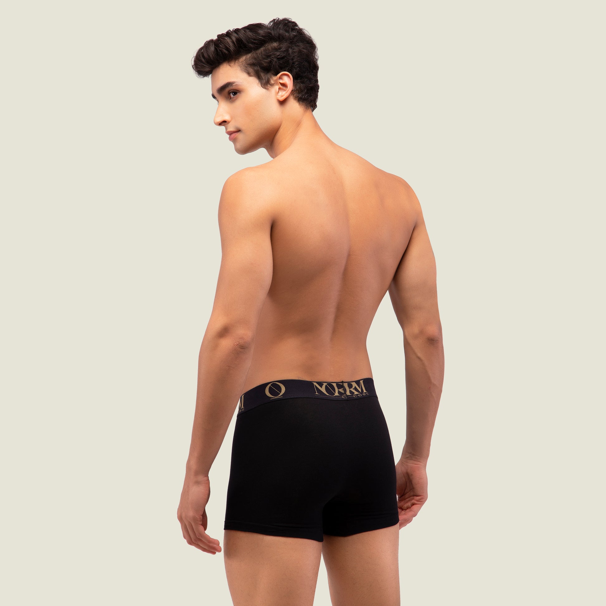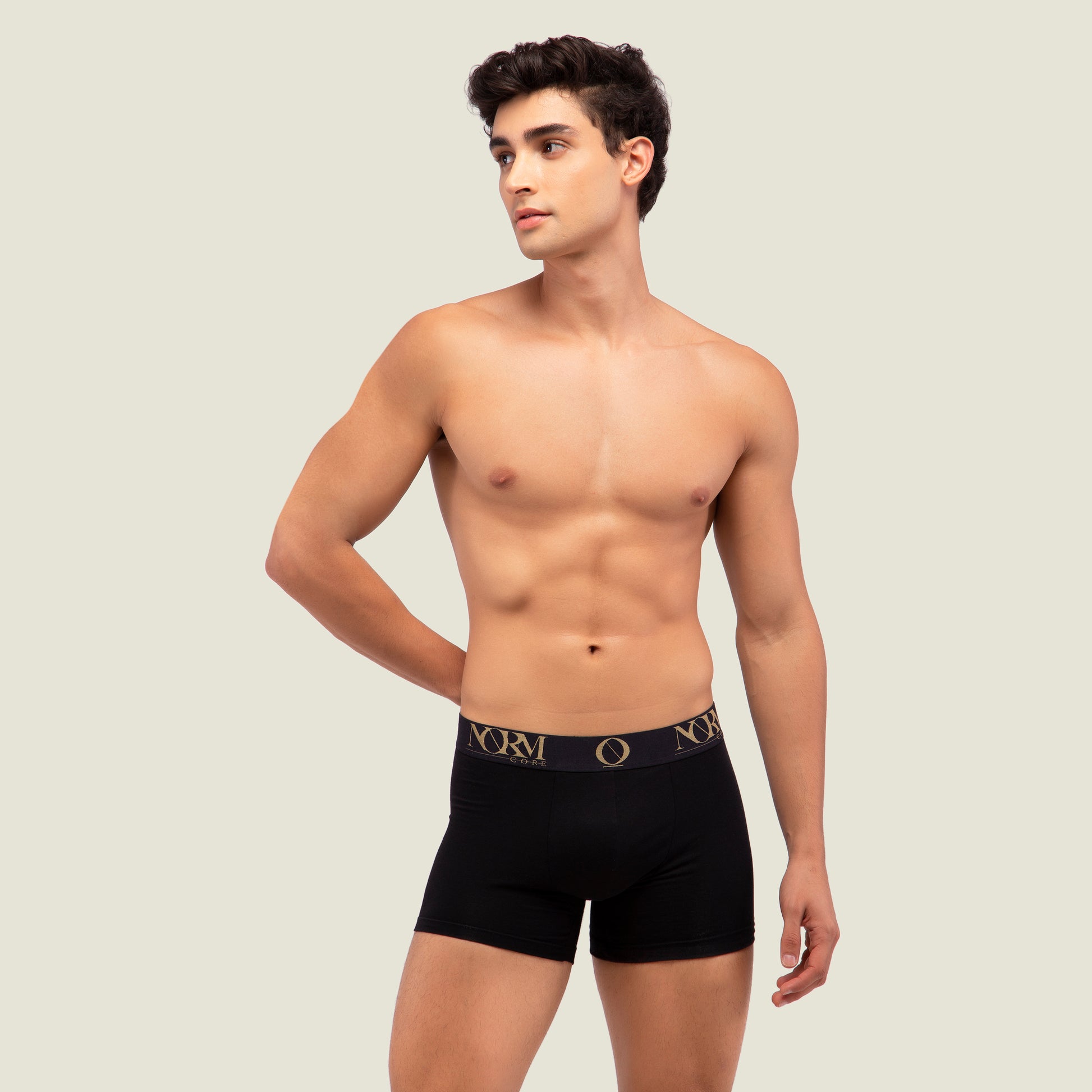 Solid black trunk with gold elasticized waistband for men. A simple yet elegant look created by the beautiful union of black and gold. Witness the right fit for you with superior comfort.