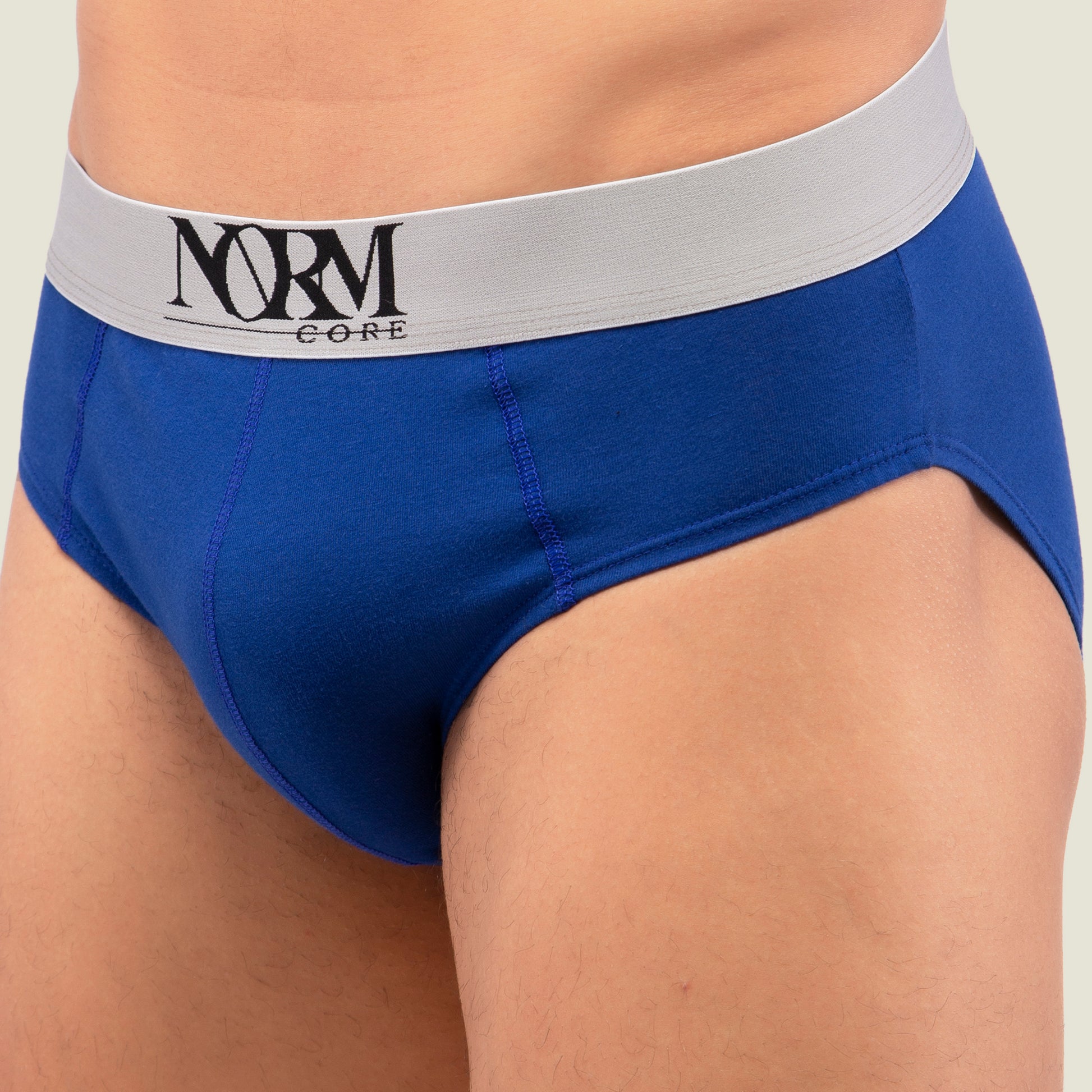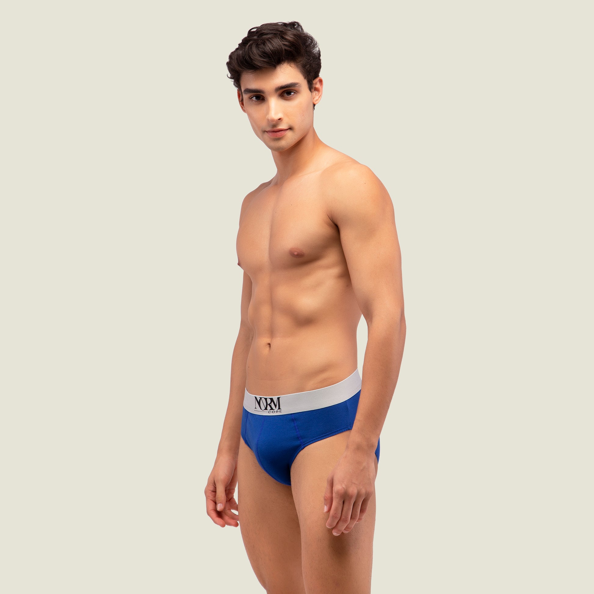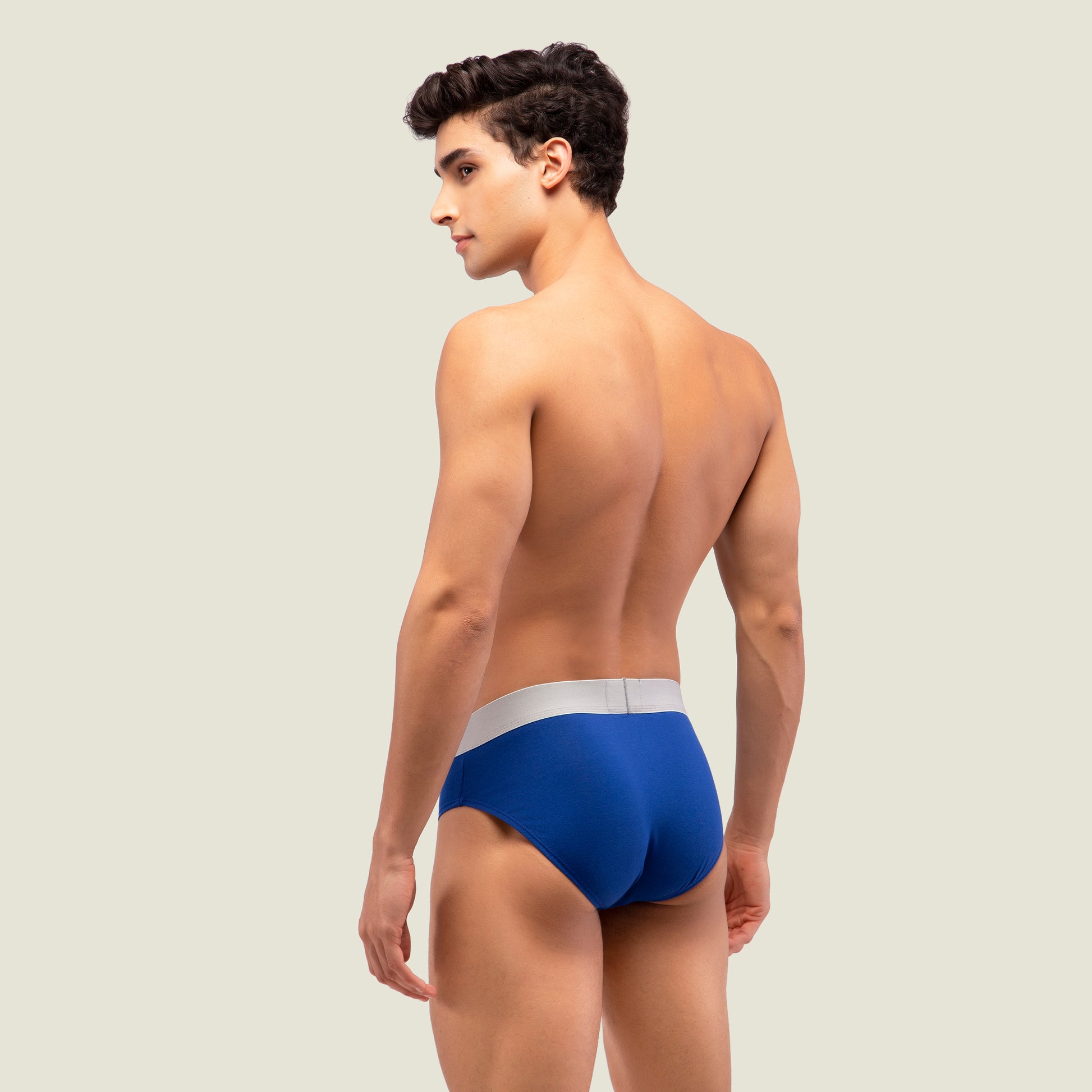 - Solid Blue brief with silver elasticised waistband for men. The silver waistband portrays grace which interlaces with the exuberant colour of the brief. Experience comfort and hygiene like never before.